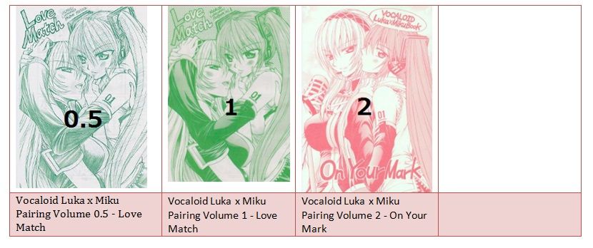 - Vocaloid Luka x Miku Pairing Volume 0.5 - Love MatchNot translated yet ; Full Vol0.5 Mediafire Link